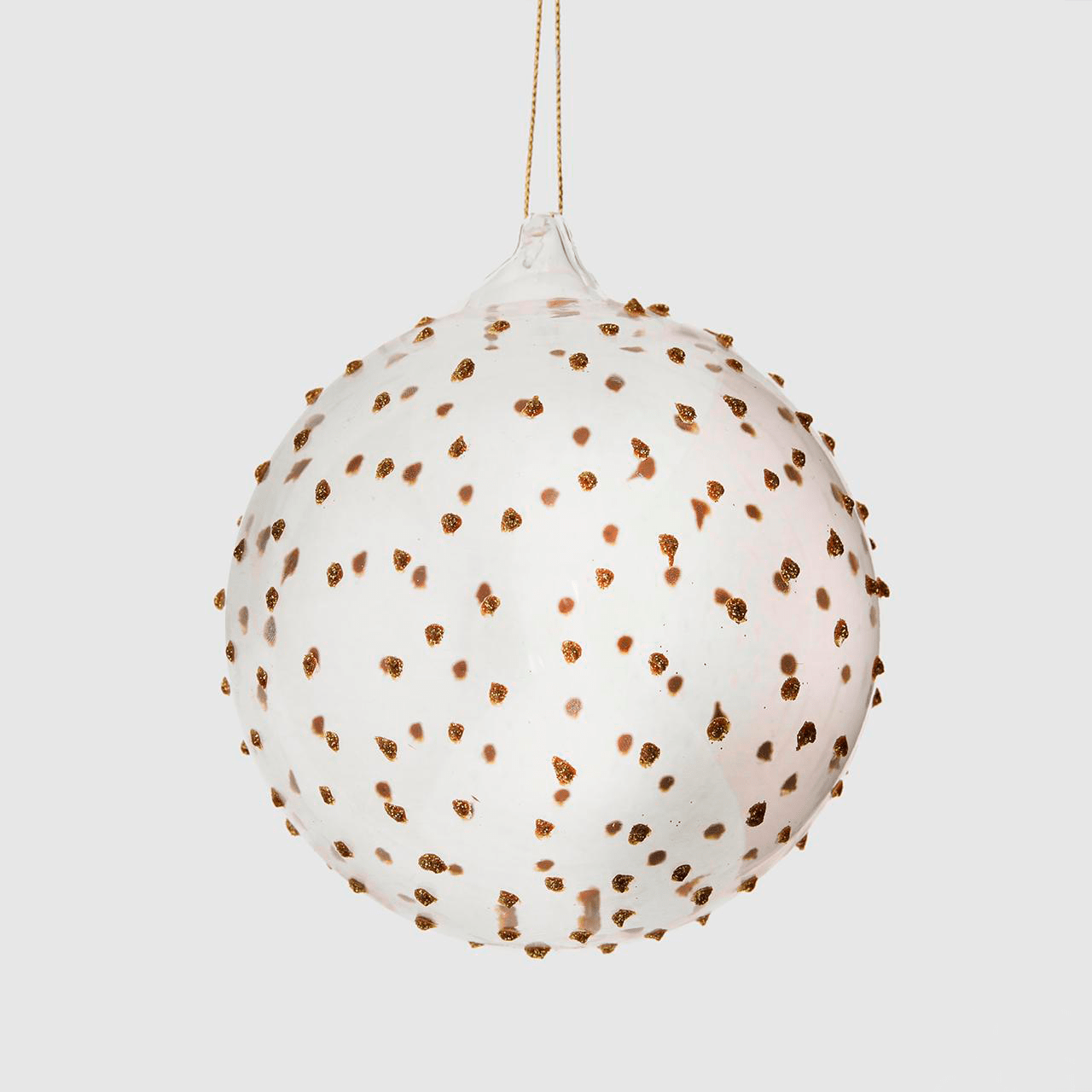 Bola de cristal con puntos de purpurina dorados.