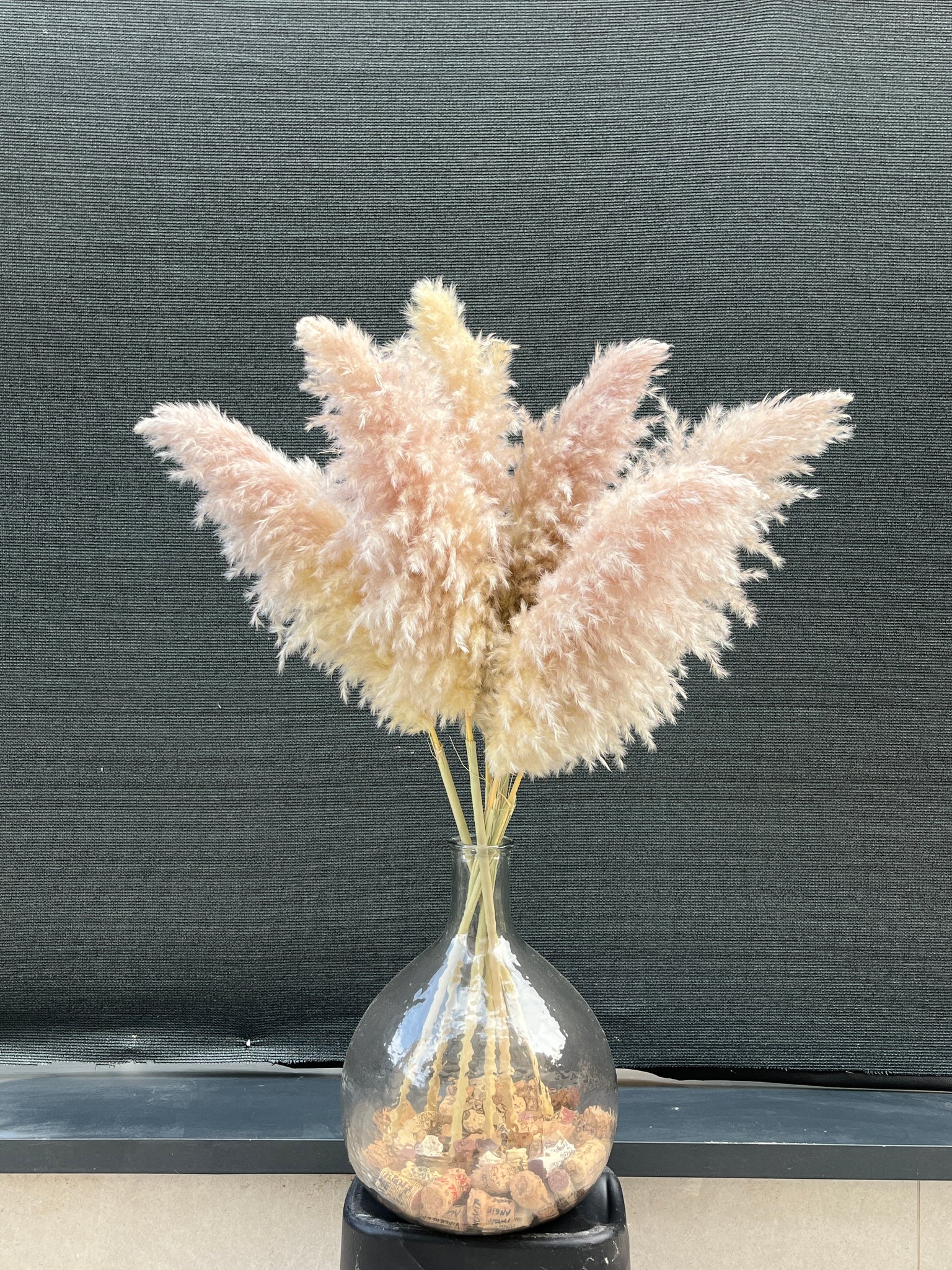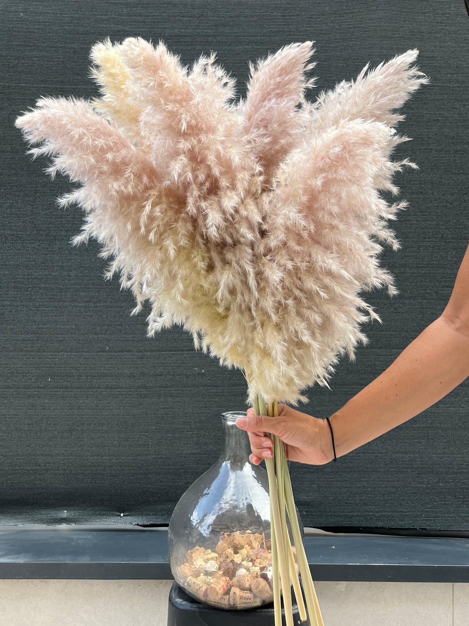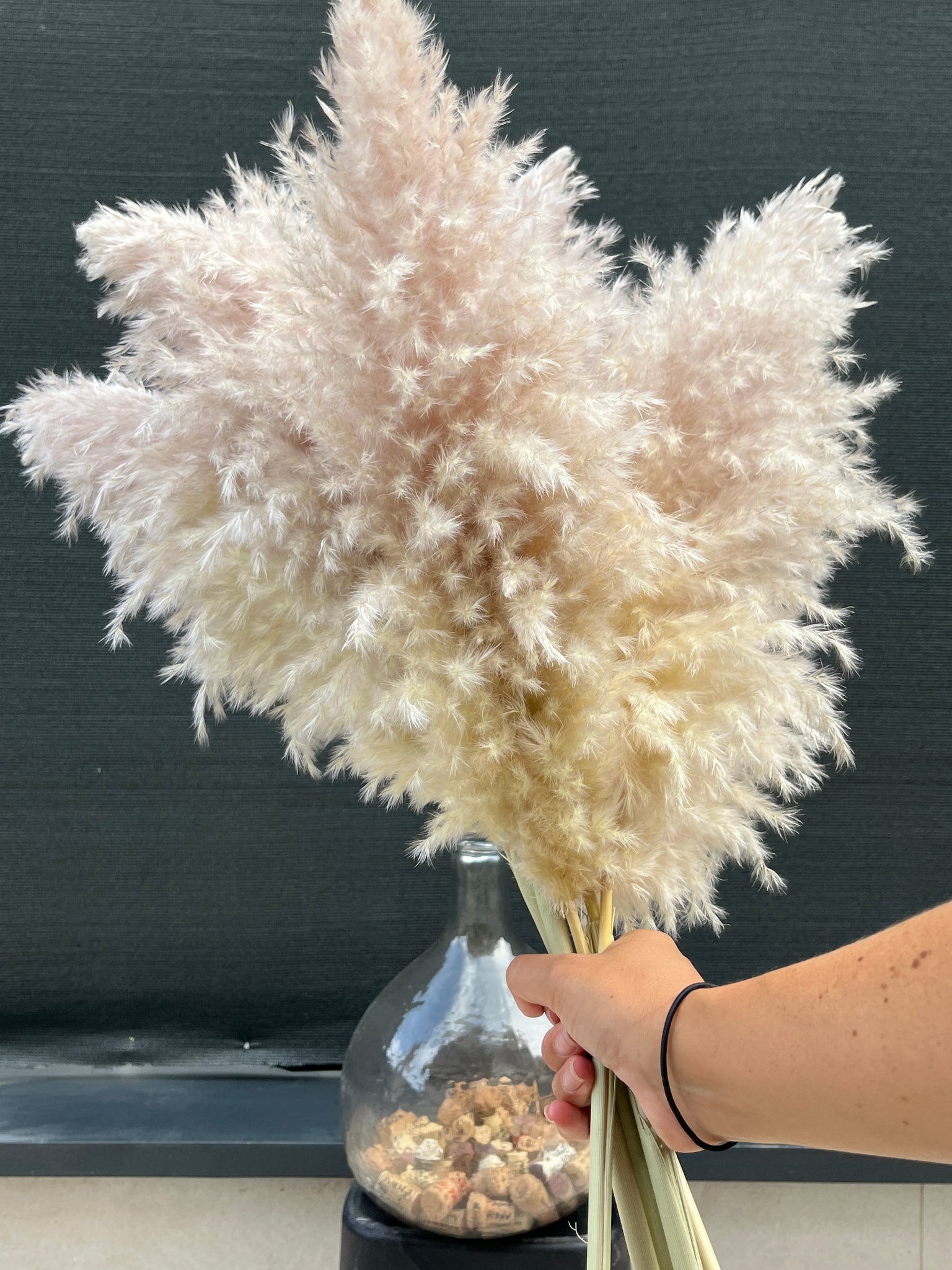 Delicada, esponjosa y con un tono entre marfil y rosado empolvado, nuestra pampa “Soft Cloud” es la pieza perfecta para aportar textura y serenidad a cualquier rincón.